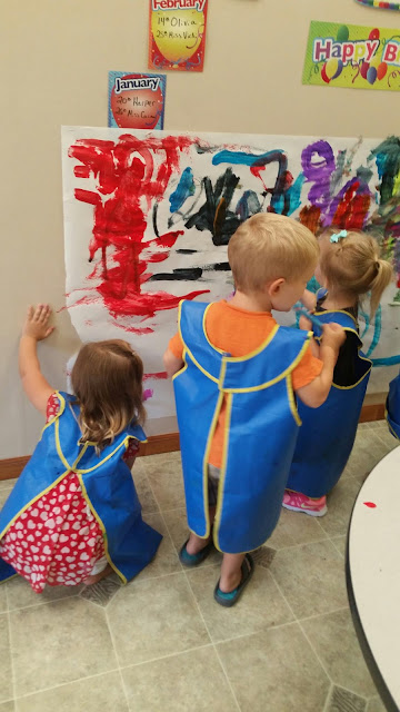 We read Bear's New Friend. We worked together to make a friendship painting. We had fun blowing bubbles on the playground and had a special snack brought in by one of our friends... ice cream cones!! To quote "L" today was "The best day ever!" Thanks for the special treat!!